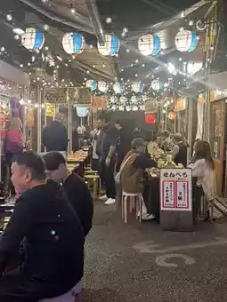 Although the village is divided into three passages: Kitayama-dori, Nakayama-dori, and Minamiyama-dori, it is not very large. Each yatai is small and exquisite, offering classic dishes from all over Japan. Especially at night, the lights, music, and lively atmosphere make it more attractive than during the day, drawing countless tourists and locals to gather and enjoy the food and socializing.