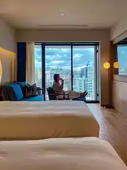 A city resort hotel with spacious rooms of over 45 square meters, an indoor pool with a panoramic view of Naha city, a sauna on the top floor, and a private lounge for guests only.