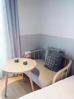 The size is compact, but when you open the curtains, there is a small terrace and an ocean view, so it feels open.
