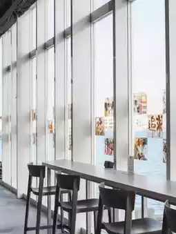 Artworks are displayed throughout the building