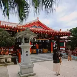 🔸️The main hall of the shrine and the sea view: Standing in the viewing area next to the main hall, you can overlook the coastline of Naha and take pictures of Okinawa's unique shrine sea view.