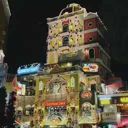 The buildings and decorations are beautiful, and the lively ambiance adds to the charm,