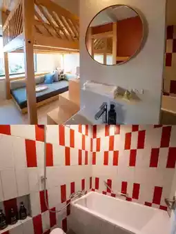 The water facilities are separate, and the Yagura Room in particular had a bathtub. The tiles are cute too 🟥⬜️