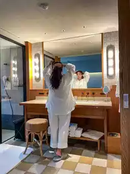 There was a large mirror and two sinks, so I was able to get ready comfortably without feeling cramped.
