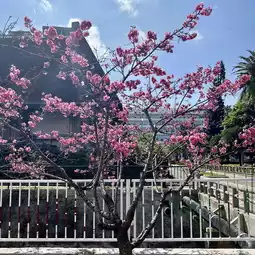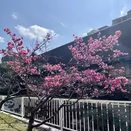 Yogi Park in Naha City Center is a perfect blend of nature and culture, making it an ideal spot for cherry blossom viewing. Its greatest advantage is its convenient location, easily accessible by foot from the monorail station, making it suitable for solo travelers and family outings. During spring, a row of Taiwan cherry trees along the riverbank blooms with vibrant pink flowers, reflecting beautifully on the clear river surface, creating a romantic and poetic scene. Inside the park, there is a steam locomotive display, located next to the Naha City Central Library, adding a touch of artistic and local life ambiance. Unlike other tourist spots, Yogi Park offers a tranquil and leisurely atmosphere, making it a great place to enjoy cherry blossoms and find inner peace. At dusk, the sunset glow illuminates the cherry blossoms, creating a particularly stunning view, making it a paradise for photography enthusiasts. It is highly recommended to plan a half-day trip in the city to stroll, take photos, or relax here. Definitely worth a visit.