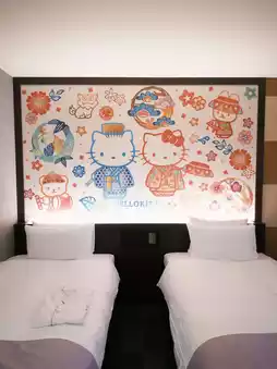 As soon as you enter the hotel, you will see Hello Kitty, Poodle and other characters accompanying you on your vacation