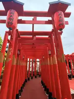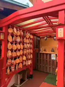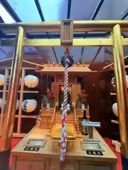On the first floor, there is a venue for rituals and events. As you ascend to the second floor, you’ll find a miniature version of the Thousand Torii Gates built on the balcony. Interspersed among them are the Daruma Hall dedicated to Daruma Daishi, the Two Deities Hall dedicated to Benzaiten, a miniature shrine for wealth, and an Inari Shrine. The colorful Daruma dolls for making wishes are located next to the Daruma Hall. Inside, you’ll find three stone Daruma figures in small, medium, and large sizes. Legend has it that if you can lift them, your wish will come true.