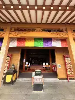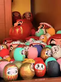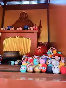 On the third floor, in front of the main hall, there is a statue of Daruma Daishi. The temple staff say that touching the statue can bring blessings for exam success or good health. The solemn main hall enshrines the Bodhisattva Kannon and displays various amulets and ema (wooden prayer plaques). The ceiling features a vivid painting of a dragon, showcasing the centuries-old fusion of Buddhism and Shintoism in Japan.