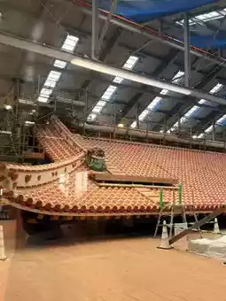 Another temporary building was erected outside the main hall. The first to third floors have different restoration progress. Outside the observation room with large windows, fragments rescued after the fire, pigment ratios, tile patterns and combinations are displayed.