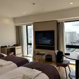 The hotel is conveniently located near several shopping centers. There's a gym and 7-Eleven downstairs, and a FamilyMart is nearby. A simple breakfast is available at the hotel, and Matsuya is also nearby.