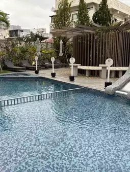 The pool, though not large, features two depth levels and a slide, making it a fun spot for kids. The open-air bath is spacious and filled with soothing hot spring water, perfect for unwinding after a day of travel. The changing rooms and lockers are well-maintained. Since there’s no large communal bath, it’s best to dry off lightly and return to your room to shower.