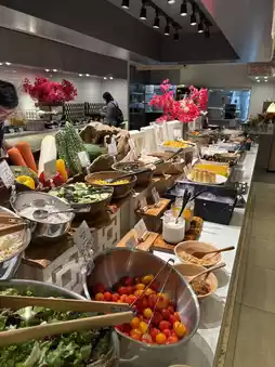 Although I don’t usually enjoy breakfast, I found the meal here highly satisfying. The spread included sushi, soba, ochazuke, and other Japanese dishes, along with a variety of salads, bread, and fruits. The hot food options changed slightly each day, keeping things interesting. I recommend going early, as it gets crowded after 8:00 AM.