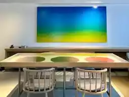 Check-in is on the second floor, about an eight-minute drive from the bustling Kokusai-dori. Electric scooters are available for rent on the first floor, making it quite convenient. We booked an Art Double Room, a spacious and comfortable room with high ceilings. Each room also has a balcony overlooking the sea, offering stunning views.