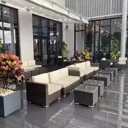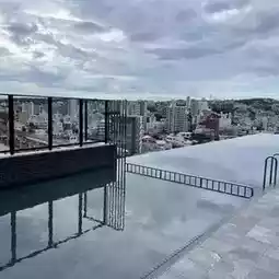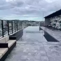 This is Hewitt Resort Naha. Unfortunately, we couldn't enter the infinity pool due to a thunderstorm warning, but the pool bar was great. Until 6pm, you can order drinks and snacks for 500 yen during happy hour 😀