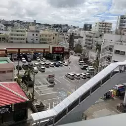 Recommended points: 6-7 minute walk to Kokusai-dori, 10 seconds from the monorail station, 3 minutes to Matsukiyo, and a fairly large supermarket across the street that's open 24 hours.