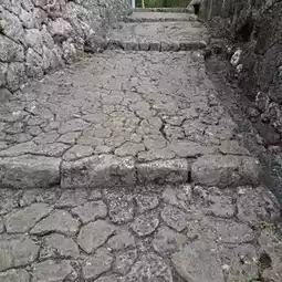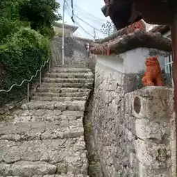 We visited the stone-paved road in Kinjo-cho, Shuri.