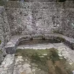 Kinjo Ohikawa is an old communal well located at the back of Kinjomuraya, halfway along the stone-paved roads of Kinjo-cho, Shuri. Although it is called a well, it is not a dug well, but rather a well that draws water from a water vein deep in the bedrock through a gutter. The beautifully built, sturdy-looking Hiikawa (Hija) has the atmosphere of having been carefully protected as a precious water source.