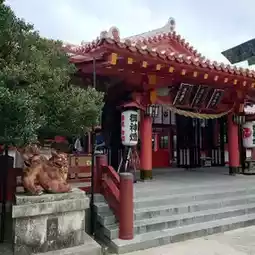 Naminoue Shrine is built on a cliff on a raised coral reef right next to Naminoue Beach, so I recommend viewing the main shrine across the water from the road overlooking the ocean. It's a spectacular view. The shrine, with its vermilion-lacquered Ryukyu roof tiles, is a typical Okinawan design. The use of shisa (lion dogs) instead of lion dogs is also a very Okinawan feature. It's definitely worth a visit!