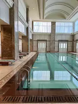 The hotel's exterior and interior are retro, giving a sense of its history.