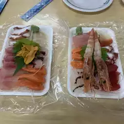 • Itoman City Market Yukura is an indoor fish market. There are seats on the 2nd floor. You can buy and have them cooked upstairs. Each shop has a deal. The seller will lead you. The tray in the picture is only 100 baht. You get sweet shrimp and uni. It's a great deal.
