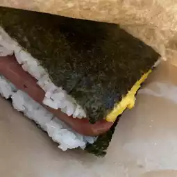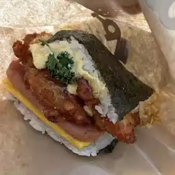 American Village Pork Tamago Onigiri is right in front of Sunset Beach, so the store is small, but there are many tables to sit and eat in front of it, which was nice! It's also good to eat while taking a morning walk~