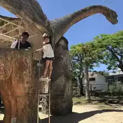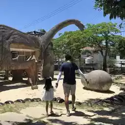 As soon as you turn the corner, you can see such a big dinosaur🦕 The dinosaur tail is a long slide😍