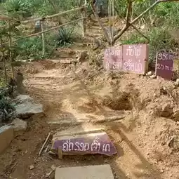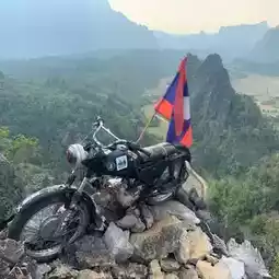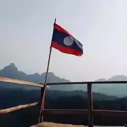 "Pha Nam Sai" is a viewpoint in Vang Vieng, Laos that you must visit!! Once you cross over to the Laos side, there is an entrance fee of 20,000 kip (about 30 baht). If you are wearing sandals, I do not recommend it because the path is steep and there are a lot of rocks. However, there is a place to rent shoes at the entrance for 20,000 kip.