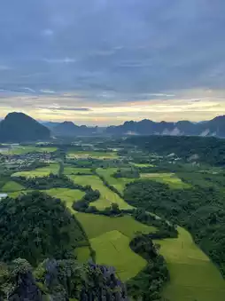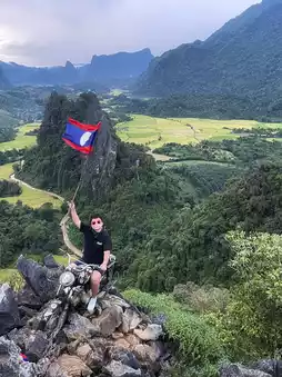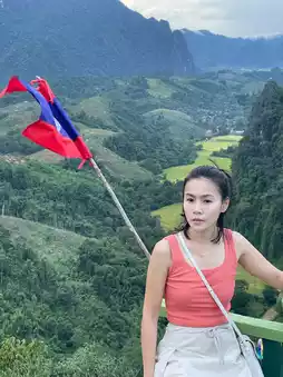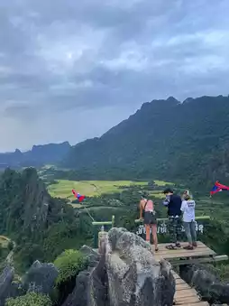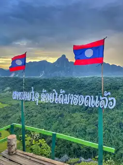 Anyone who has the opportunity to come to Vang Vieng must add this place to your list. You have to come and get tired at least once for the beautiful view. Pha Nam Sai is a check-in point that cannot be missed for anyone who comes to visit Vang Vieng. It is a landmark for taking pictures with a super cool motorbike that you can carry up here. But it is worth it. The natural view is already very beautiful, but having a motorbike makes it even more unique.
