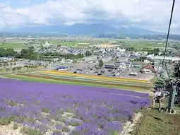 When you get there, I recommend taking the elevator to the top to see the city as far as the eye can see. The weather was great today. The staff said that on a good day, you can see all the way to the Tokachi-dake mountain range. I would like to say that the view of Lavender En is at its peak. Lavender is in full bloom. After taking photos, enjoying the view, and admiring the beauty