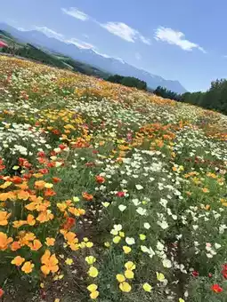 Features: Flowers bloom on a vast land of about 15 hectares, forming a magnificent flower field for viewing. In the strip-shaped flower fields, you can enjoy different flowers from spring to autumn, such as tulips, poppies, sunflowers, etc. In the green season from late April to late October, there is also a tractor bus (charged) running around the park. In addition, the alpaca farm (charged) is open all year round, and you can get close to the cute alpacas through feeding and other experiences.