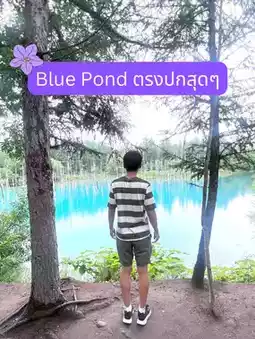 💧💦Let's continue to another landmark in Biei: the Blue Pond. There's no entrance fee, but there's a 500 yen parking fee per car. When we arrived, it was packed with tourists, mostly Chinese. Is it as beautiful as it appears? Yes, it is, but the sheer number of tourists made it difficult to fully appreciate it.
