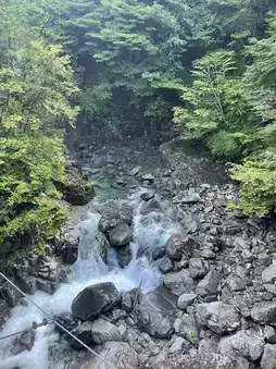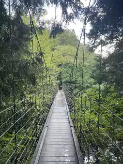 Kannon Falls is located further inland from Fudo Falls in Gifu, and you can reach it by crossing two narrow suspension bridges with a maximum capacity of three people.