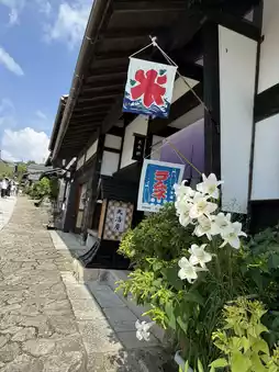 Tsumago-juku is a national tangible cultural property that has survived the Edo Period. It's quaint and quiet, with few residents and few businesses. Yet, for some reason, I loved the atmosphere there. On the day of my visit, there were only two or three small sundries and a small ice cream shop. The sight of tourists wandering through the ancient streets felt like stepping into a time warp.