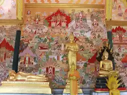 Wat Si Sa Thong, Nakhon Pathom Province is a widely known temple because every day, many people come to worship Phra Rahu for good fortune at this temple. According to history, Wat Si Sa Thong was built in the Rattanakosin period during the reign of King Rama I. The Emerald Buddha was brought from Vientiane to be enshrined in Bangkok and the people of Vientiane migrated to settle in many places, such as in the area beyond the Tha Chin River in the current area of Tambon Huai Tako. They established a village called Hua Thong Village because they found a golden Buddha head, which was a good sign. When it became a large community, they thought of building a temple.