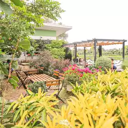 ☕ The interior of the shop is decorated in the middle of nature, with colorful flowers and green trees in every corner. It is very shady. There is also an air-conditioned zone, a riverside zone, and a garden zone. If you want to relax and sip coffee, you can go here to breathe in the fresh air! 🏞💚
