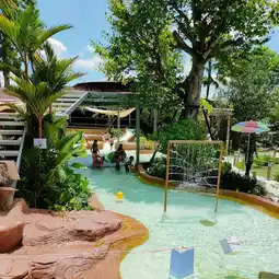 Cafe and restaurant Nakhon Chai Si, Nakhon Pathom Province. On holidays, if you want to do something with your family or friends, this place is perfect. 🍃🌾 It is a small farm surrounded by nature. There are many activities such as feeding piglets, feeding goats, rabbits, white buffaloes, ducks, geese, and an activity area that children will definitely love.