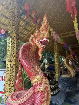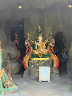 In addition, there is a large golden reclining Buddha that looks very peaceful and elegant. 🌟 And don't forget to take a photo with the beautiful Naga statue that is the identity of this temple. 🐉📸