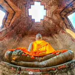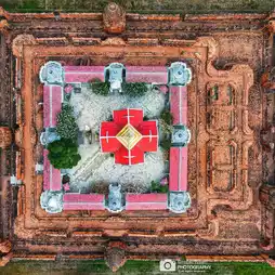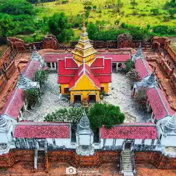 Having a three-tiered base can be found in many important Khmer castles, such as Angkor Wat, Baphuon, or Bayon. The first and second floors are still in their original Ayutthaya-era condition, although the tops of the satellite castles are broken off and are not completely gone.