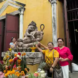 The statue of Ganesha is located in Wat Prasat Nakhon Luang, Phra Nakhon Si Ayutthaya Province. It is an ancient site from the Ayutthaya period. Therefore, it looks very sacred and powerful. When you come here, you should respect the place, be modest in body and speech, and dress appropriately.
