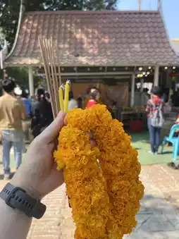 One of the highlights of Prasat Nakhon Luang is praying to the ancient Ganesha, who is more than 300 years old and sits on a throne of skulls. He is believed to help with work, finances, studies, and eliminating obstacles. The way to pray is as follows:
