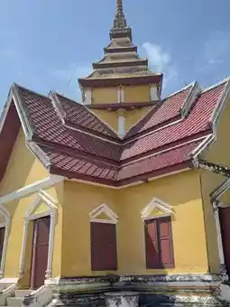 Wat Prasat Nakhon Luang is a valuable historical site. It is an ancient temple that has been around since the Ayutthaya period. The temple was established in 1900. I went up to see its beauty and was very impressed. You can walk up to the third floor, Phra Mondop Phra Chan Loi, which has four Buddha footprints. 🙏🏼