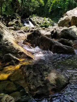 Before the end of this holiday, let's play in the waterfall in Nakhon Nayok. Wang Takrai Waterfall is very natural, shady, and has a great atmosphere. The air is fresh. There are many types of plants to lay out for a picnic and enjoy the view. I must say that Wang Takrai Waterfall has a lot of rocks, alternating along the way. Be careful when walking. The water is not very deep, so you can swim or lie down in the water. The water is cool right now.