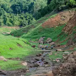 🌳The boat will take us to 2 points. The first point is the innermost source of the dam, which is a wide green grass field with a canal on the side. If you walk in deep, it will be beautiful. The other point is Khao Chong Lom Waterfall, which is a waterfall stream flanked by mountains. There are piles of rocks that look strangely beautiful. There are green grass fields all around.