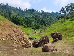 🌱The hidden beauty behind the Khun Dan Prakan Chon Dam. This is the Green Season or the nickname that people like to call it 🌱Greenland, the green land🌱 with a stream flowing from the waterfall. The trees and grass around are lush and green. If you want a green atmosphere, the water is not much, I recommend coming around June-September.