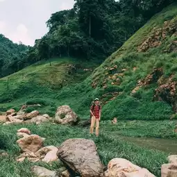 The second spot is "Khao Chong Lom," a key highlight of the boat tour at Khun Dan Dam. This area offers picturesque views for photography, including grasslands, forests, streams, and rocky terrains. The large rock in the middle of the water is particularly popular among tourists. Walking about 1 kilometer into the forest, you’ll discover "Khao Chong Lom Waterfall," a refreshing cascade nestled amidst the lush forest.