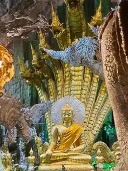 💞 In addition to the beauty of the Naga Cave, the overall atmosphere of the temple is quiet and shady, suitable for practicing Dhamma and relaxing. The statues and murals tell interesting stories of the life of the Buddha, allowing visitors to learn and absorb the principles of Dhamma. The temple area is beautifully landscaped, clean, and has many corners for taking souvenir photos. It is a temple that combines artistic beauty, faith, and peace, making you feel full and unforgettable. And I want to go back again