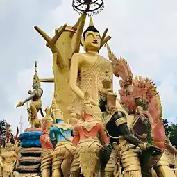 🌹Wat Mani Wong, Nakhon Nayok Province is a temple with outstanding beauty and uniqueness, especially the Naga Cave, which is intricately decorated with Naga sculptures and many deities. Inside the cave, there are Buddha statues and sacred objects for worship and blessings. In addition, there are other beautiful architectures to see in the temple, including a large statue of Thao Wessuwan, making Wat Mani Wong another destination not to be missed for those who want to worship and admire the exquisite artwork.