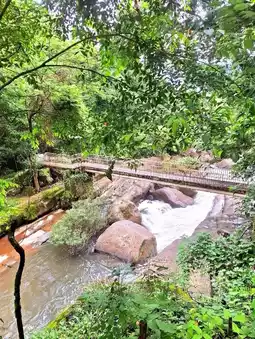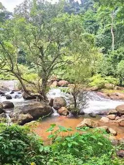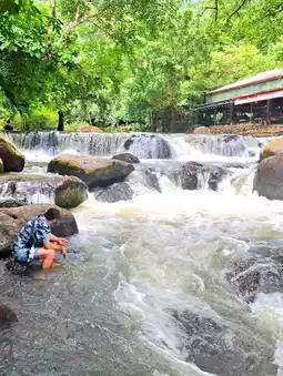📢 Nang Rong Waterfall is located within Khao Yai National Park, but is managed by the Nakhon Nayok Provincial Administrative Organization. This medium-sized waterfall features cascading water over rocky tiers. Nearby, there's a parking area where you can swim. Showers and toilets are available, and overnight accommodations are available. Most visitors enjoy picnics, relaxing on mats, and enjoying som tam (papaya salad), nam tok (grilled chicken), and grilled chicken.