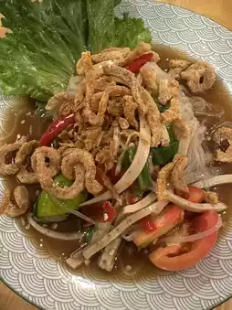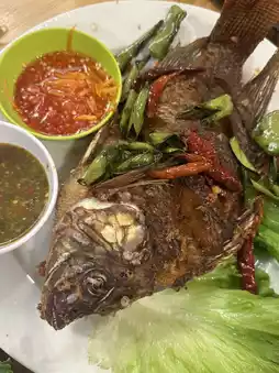 Everyone's been to Nakhon Nayok, right? Looking for a delicious restaurant? I'd like to recommend Thong Naem Nuang. I stumbled upon this restaurant and had the chance to try it out. It was incredibly delicious! The food was reasonably priced. We ate a lot, and it only cost 1,200 baht, filling up the table. My favorite dish is the papaya salad with rice vermicelli. It was so delicious, it was exactly what I was looking for. I ordered three more! The fish sauce was just right, and it didn't smell bad. The other dishes were also delicious. Another dish I ordered to take home was the Naem Nuang Roll. You don't have to wrap it yourself; they'll wrap it for you, so convenient! The restaurant is located near the Khun Dan Prakan Chon Dam. If you're in Nakhon Nayok, don't forget to stop by! 💗