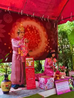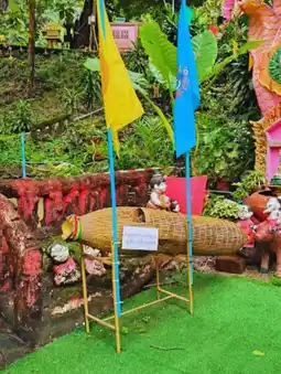 💯Wat Khao Thurian, also known as Wat Si Chomphu, is an ancient temple in Nakhon Nayok Province that stands out and stands out from the crowd. The temple's almost entirely decorated in bright pink, including the main chapel, viharn, pavilion, and the large Naga staircase that extends up the hill. These beautiful and unique creations have become a unique attraction, attracting visitors and visitors alike for photo opportunities. Inside the main chapel, a Buddha image resembling the Phra Buddha Chinnarat is enshrined, allowing Buddhists to pay their respects and pray for good fortune. There's also a statue of Thao Wessuwan, a revered deity, for worship. The temple's hillside location offers a tranquil and shady atmosphere.